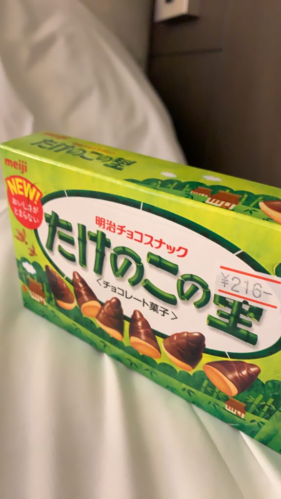 酔っ払ってから「たけのこの里」をベッドに並べて、つかの間の日本気分を味わう夜でした。