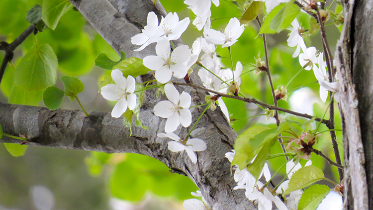 こちらは、樹齢300年の桂に宿った山桜で、淡いピンクの可憐な花をつけます。