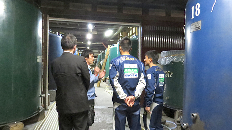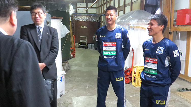 当蔵が2014年シーズンから資本参加・スポンサー企業として応援しているブラウブリッツ秋田のフロントの川辺清多氏と選手2名がホーム開幕戦を4月2日(日)に控え、昨年に続きPRを兼ねご挨拶に来社されました。