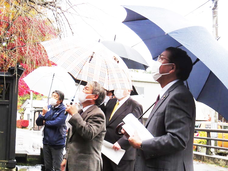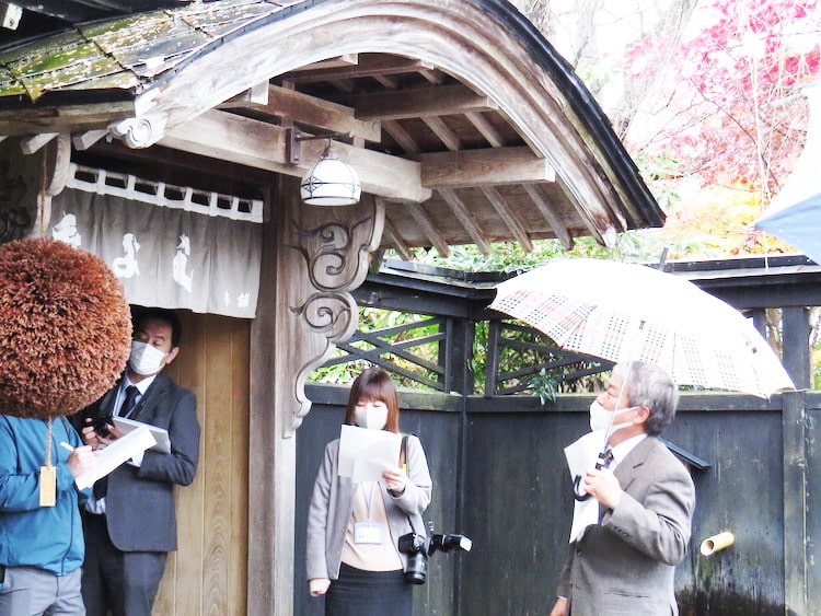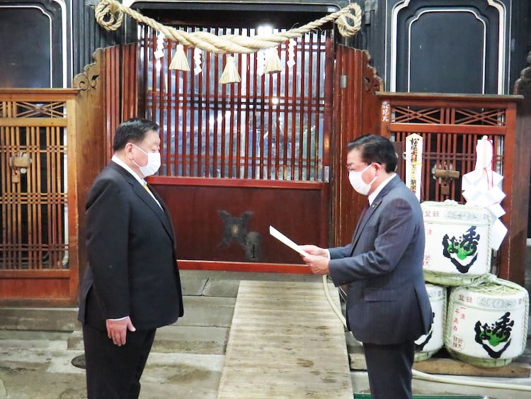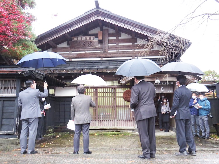 新型コロナウィルスの影響が文化庁へも波及し、証書と銘板がようやく出来上がったそうです。今回は、老松大仙市長が弊社までわざわざ足を運んでいただき、酒蔵の正面で授与式の運びとなりました。誠にありがとうございます。秋田公立美術大学の澤田教授や大仙市文化財保護課の皆様をはじめ、ご協力いただいた多くの方々へ心より御礼申し上げます。