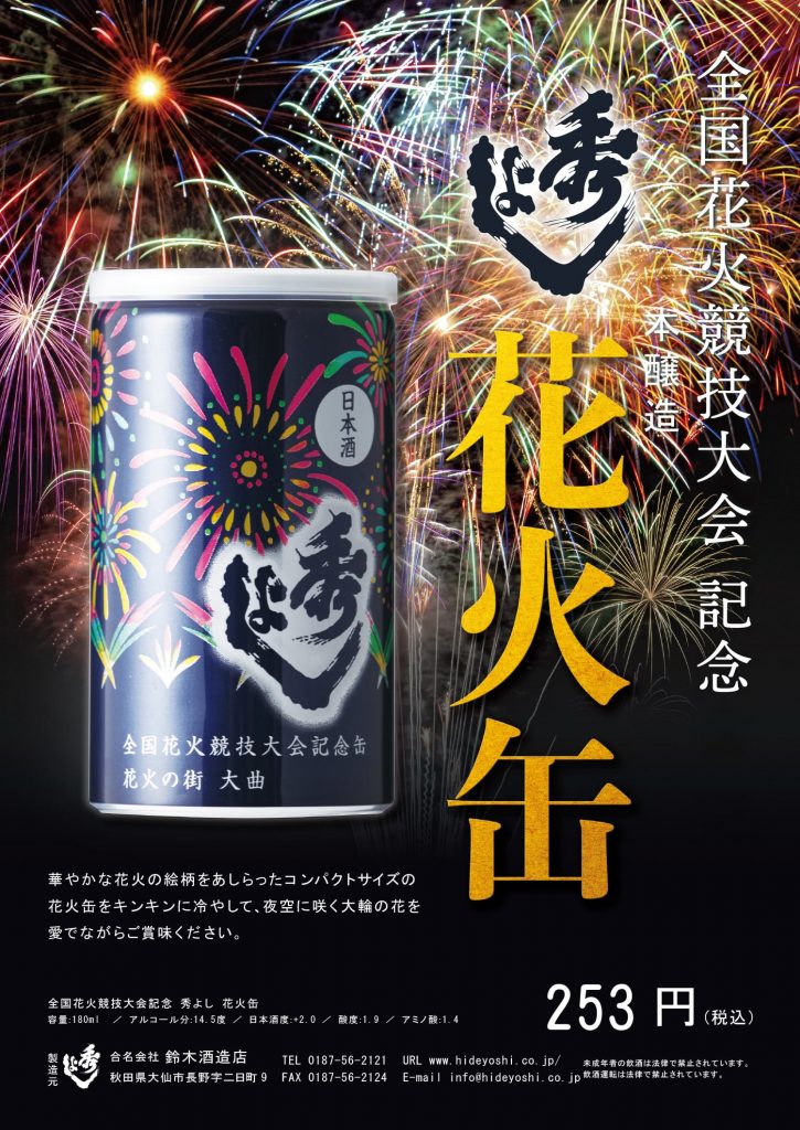 そして8月の最終土曜日には、秋田の夏のトリを飾る「全国花火競技大会(大曲の花火)が開催されます。夜空を彩る大輪の花を、「秀よし 全国花火競技大会記念缶(花火缶)」をキンキンに冷やして飲みながら楽しんでみてはいかがですか。