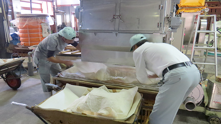 今年、釜場には、新たに放冷機と洗米機が導入されました。
