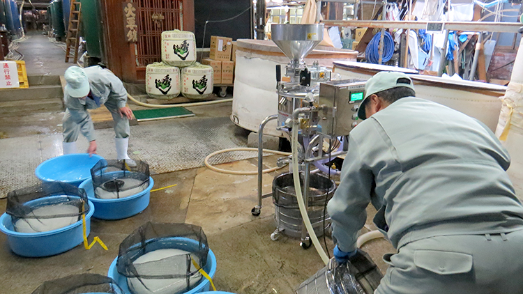 ほとんどの麹用のお米はこの洗米機を使いますが、格段にぬか落ちが良くなり見事な出来です。洗米作業の人数も激減です。