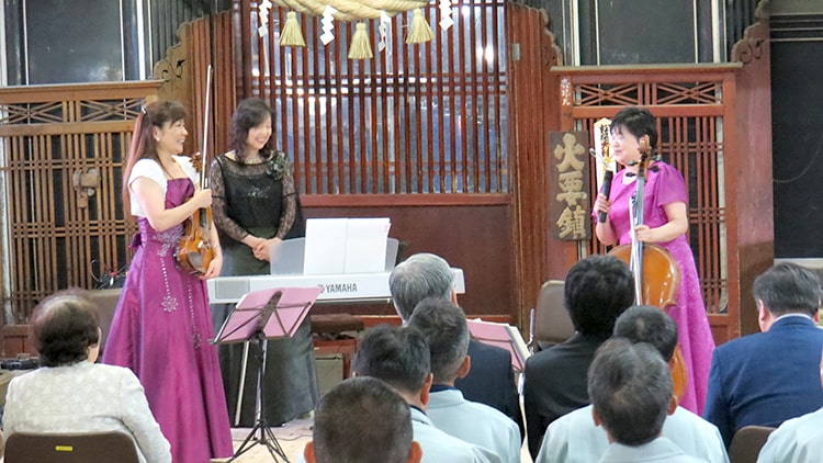 北嶋奏子先生(ヴァイオリン)、藤原ケイ子先生(チェロ)、大谷祥子先生(ピアノ)のお三方によるピアノトリオ「コレンテ」が演奏してくれました。