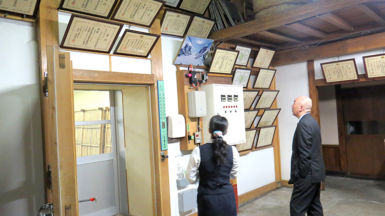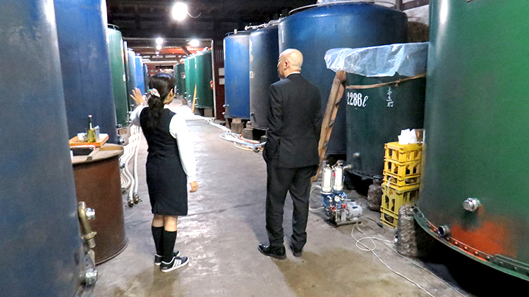 飛行場へお送りする前に当蔵へ立ち寄られ、蔵見学をして頂きました。