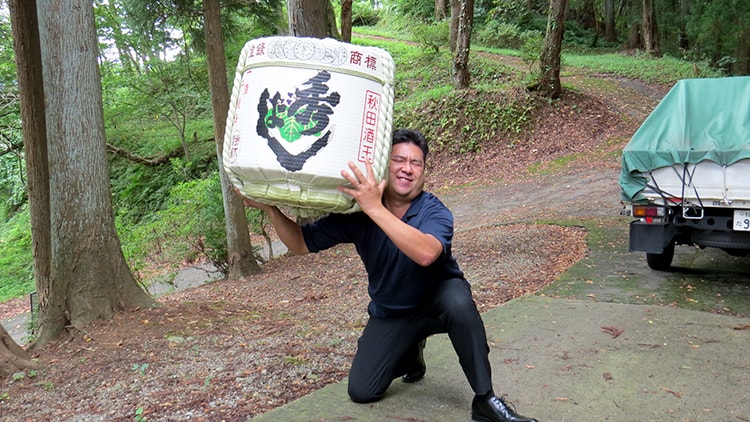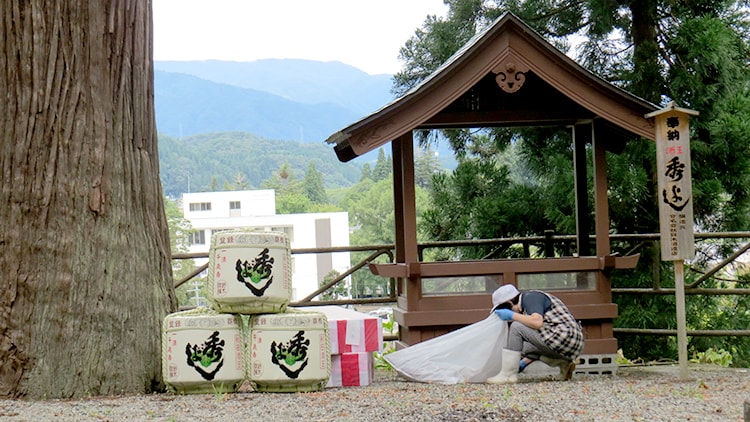 今年も神明社本殿横にある酒樽は、秀よしの社員が掃除に伺いました。