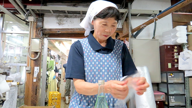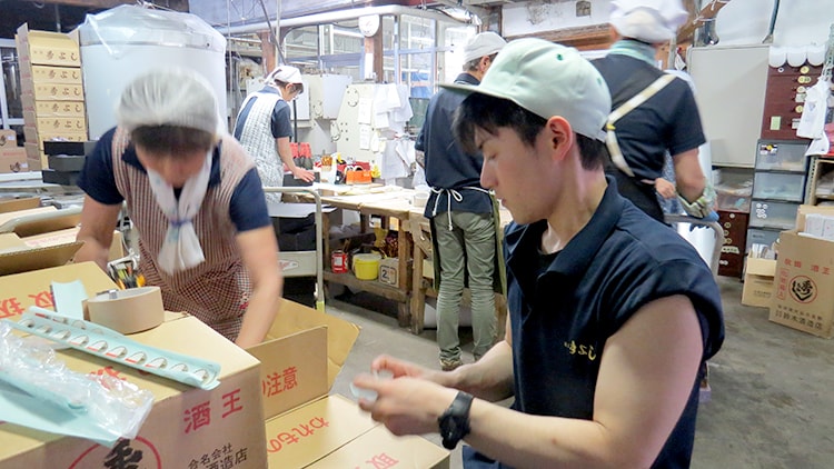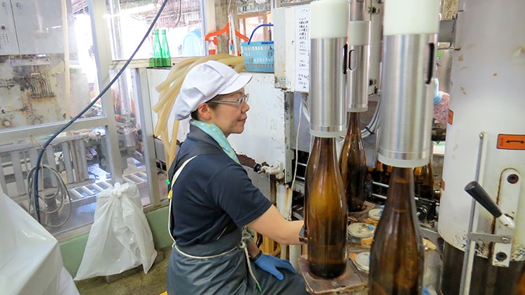 蔵人が冬の間、丹精込めて造ったお酒を、ビンに詰めて製品にするのが私たち製品加工課の仕事です。