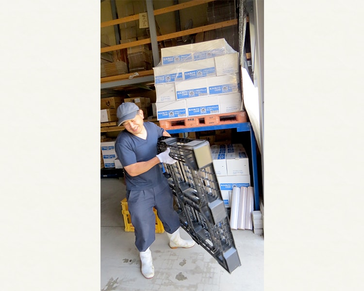 山信田さん・・・クリーンルームのリーダーです。毎日の詰め作業が終わった後の掃除、お疲れ様です。