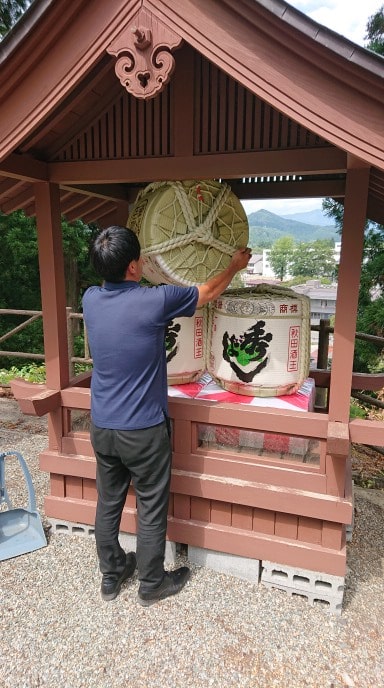今週から始まる角館の祭典を迎えるにあたり、弊社「お掃除の精鋭部隊」が神明社様本殿横にある酒樽のお掃除に向かいました。我々、精鋭部隊に与えられた時間は1時間。お掃除の精鋭部隊2名は会話もする事無く、黙々と任務を遂行します。
