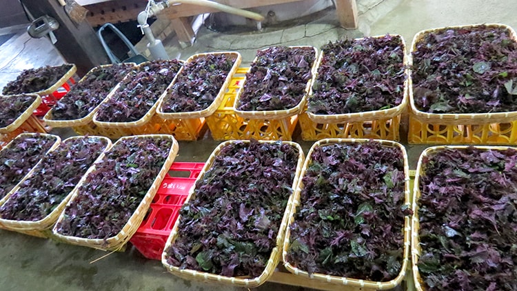 紫蘇は冷たい水で汚れを落として、梅と一緒に漬け込みます。