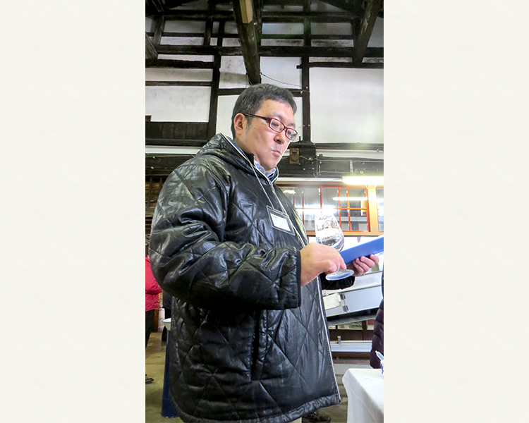 参加者は真剣な顔で利き酒です。一番良いお酒を如何に安く落とすかが醍醐味ですが、そうは簡単にはいきません。