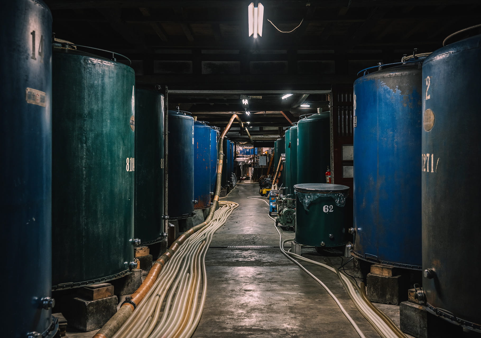 明治初年に建て替えられた家屋と酒蔵は、永い年月を経たものだけが持つ重厚感と風格を感じます。酒蔵の中にはお米を蒸すための巨大な「和釜」やお酒を搾るための総漆塗りの「酒槽」(さかぶね)などが鎮座しています。どの道具も現役で使われているとは信じられないほど愛用しています。
